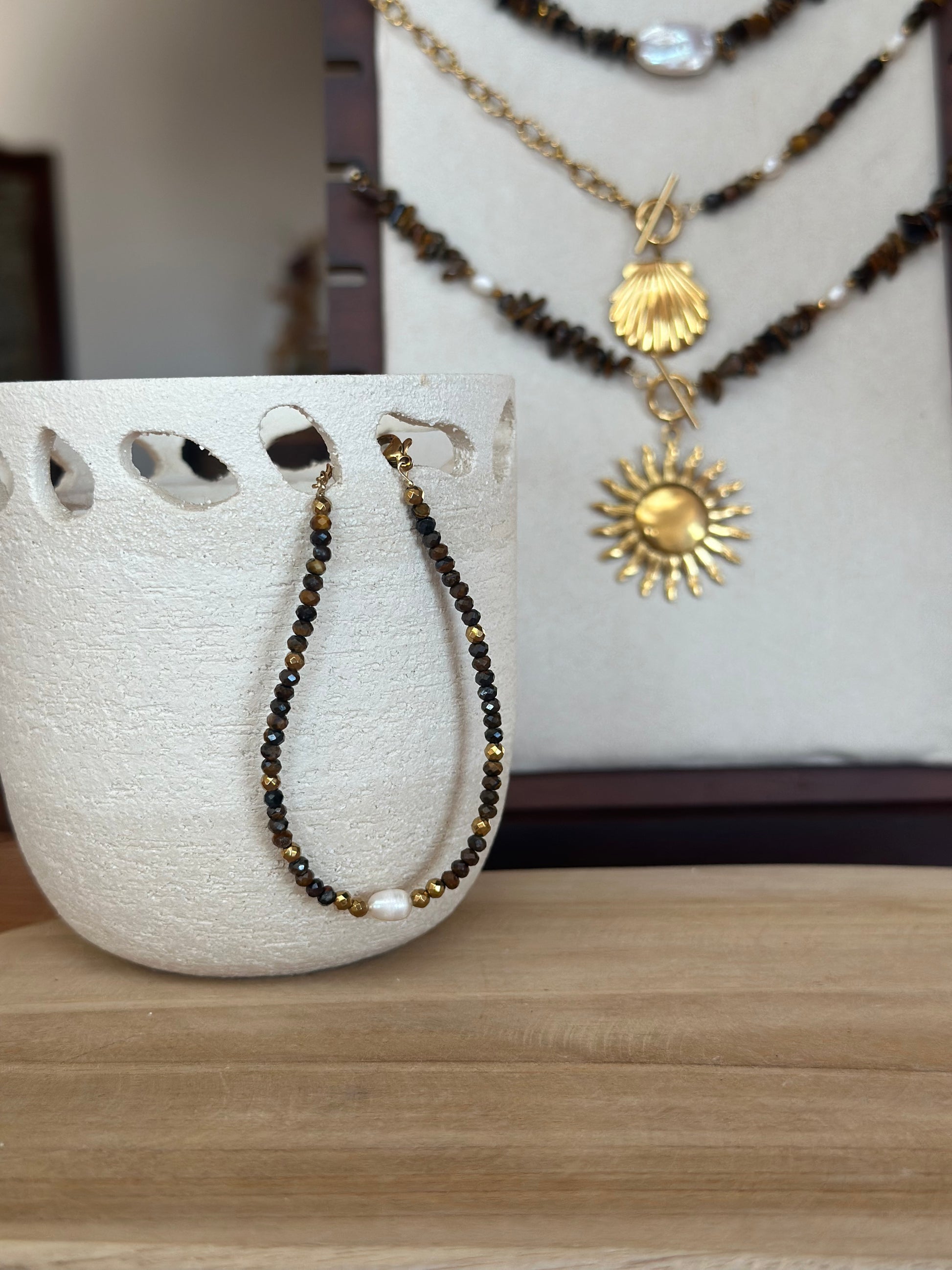 Chaque bijou est unique, les perles et les coquillages sont naturels et peuvent donc présenter de légères variations par rapport aux photos