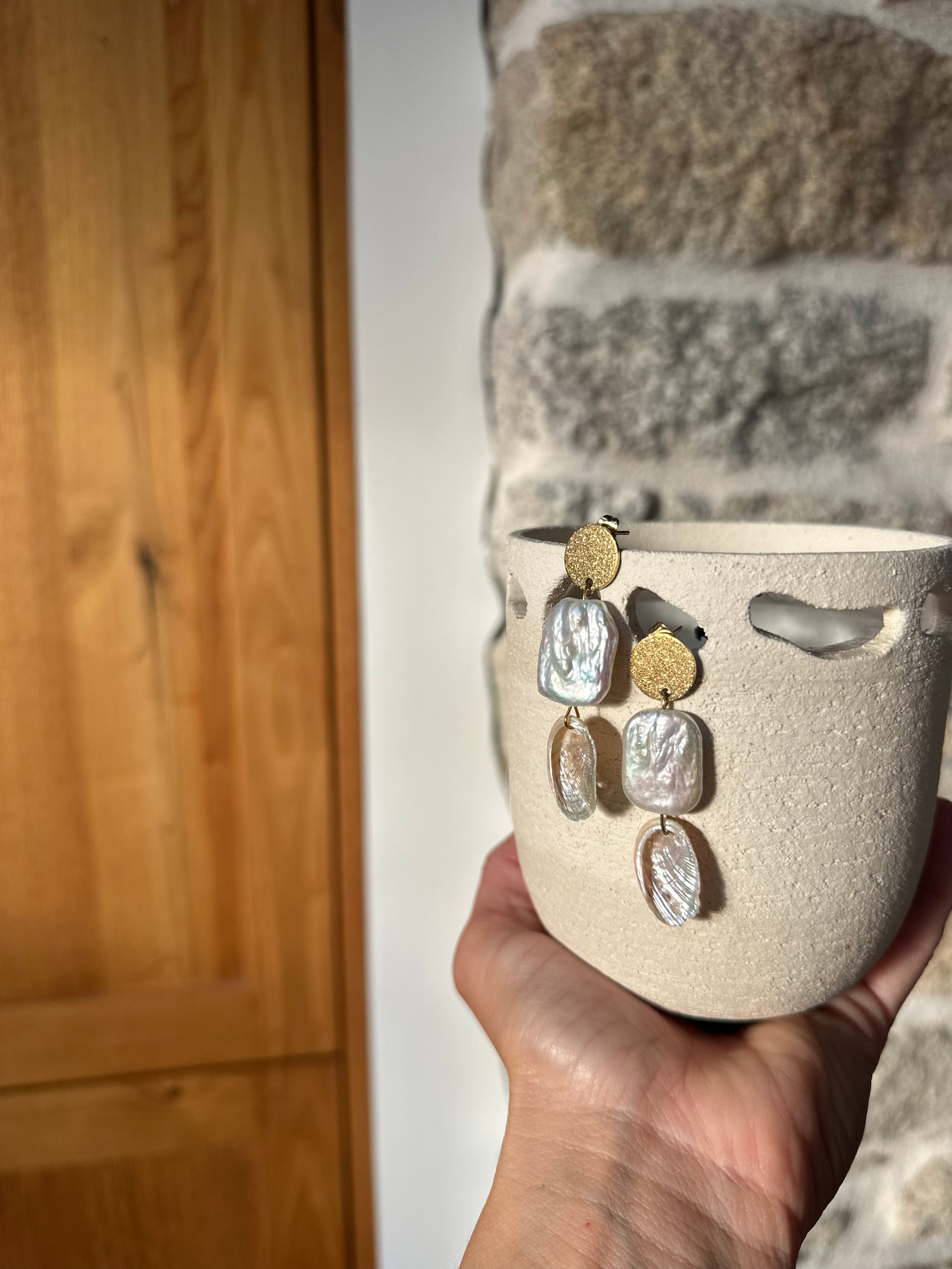 Boucles en acier inoxydable, nacre & ormeaux breton