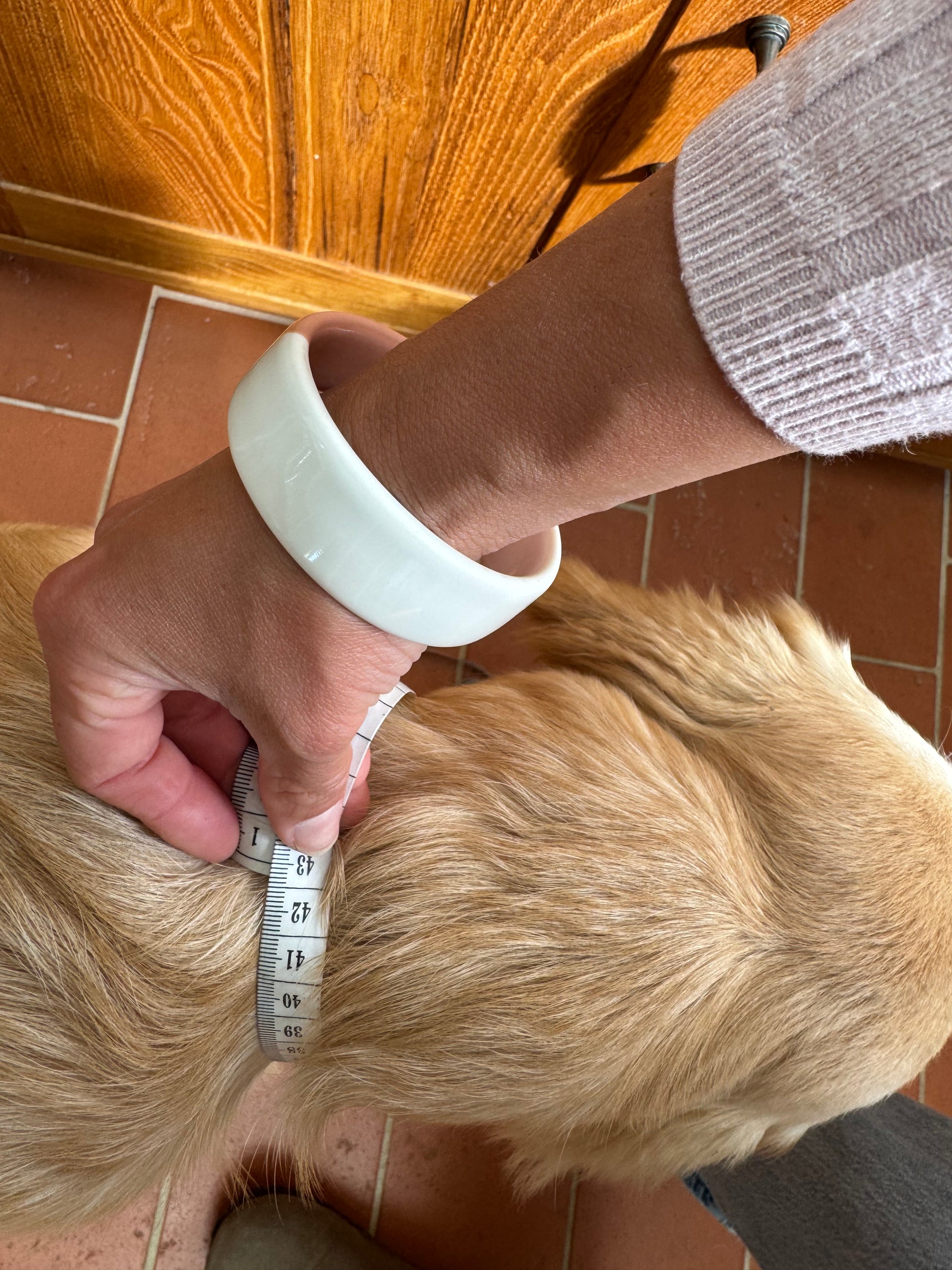 Nos colliers sont fabriqués sur mesure, le tour de cou de votre chien vous sera demandé à l'étape suivante (munissez vous d'un mètre ruban pour calculer son tour de cou ou le tour de son collier)